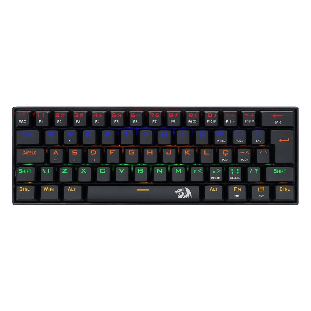O Redragon Lakshmi K606R é um teclado mecânico compacto 60% com 61 teclas, layout ABNT2 brasileiro, switches Redragon MK II com resposta tátil e audível, iluminação RGB Rainbow com 19 efeitos, cabo USB-C removível para maior portabilidade e durabilidade, além de full anti-ghosting para evitar falhas de múltiplas teclas pressionadas simultaneamente.